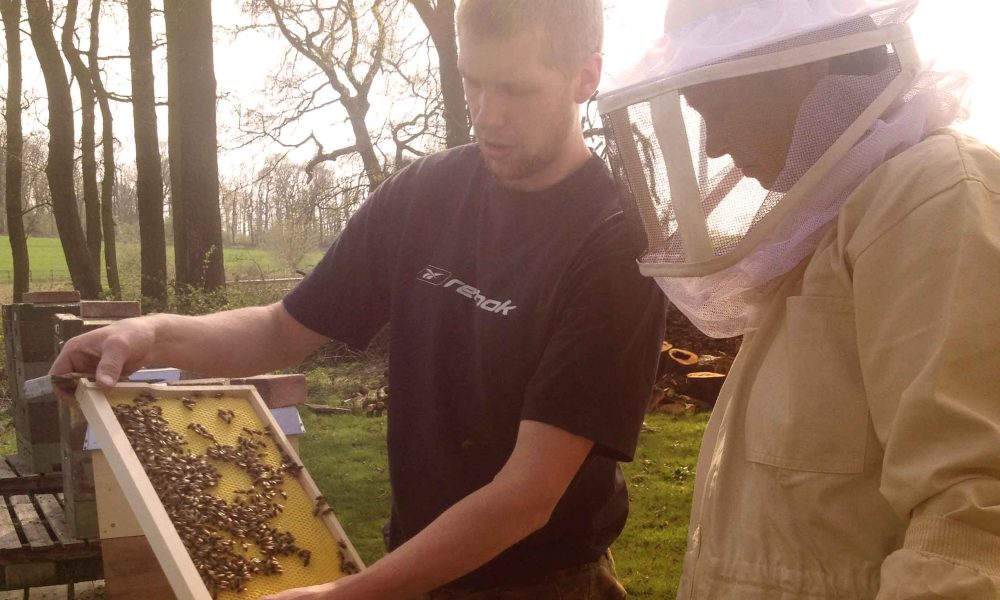 Vor Ort am Bienenvolk herrscht gespannte Neugier und die allumfassenden Sinneseindrücke lassen die Kinder ganz andächtig werden und die Bienen auf den Waben beobachten.
