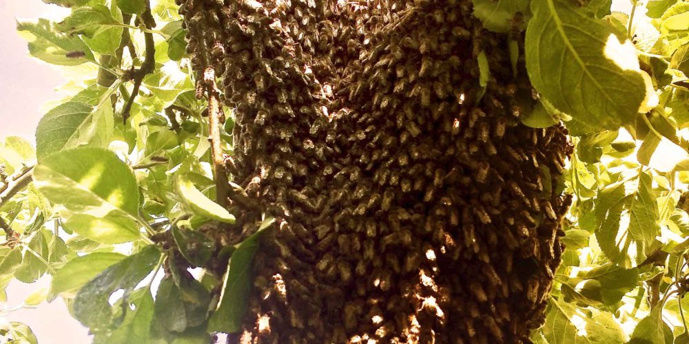 Dass Bienenvölker schwärmen, ist ein ganz natürlicher Prozess. Wenn sie den Zenit ihrer Volksentwicklung erreicht haben und vor Bienen, Brut und Honigvorräten nur so strotzen, ziehen sie mehrere neue Königinnen heran. Bevor diese schlüpfen, umgibt sich die alte Königin mit einem Teil ihres Volkes und schwärmt aus. Dabei nehmen sie einen Teil der Honigvorräte als Startkapital mit. Anschließend lassen sich diese Bienen als sogenannte Schwarmtraube an einem Baum oder ähnlichem nieder. Von hier aus beginnt die Suche nach einem neuen Zuhause. Wenn die Bienen eine geeignete Bleibe mit einem Volumen von ca. 40l gefunden haben, machen sie sich auf den Weg und ziehen dort ein.