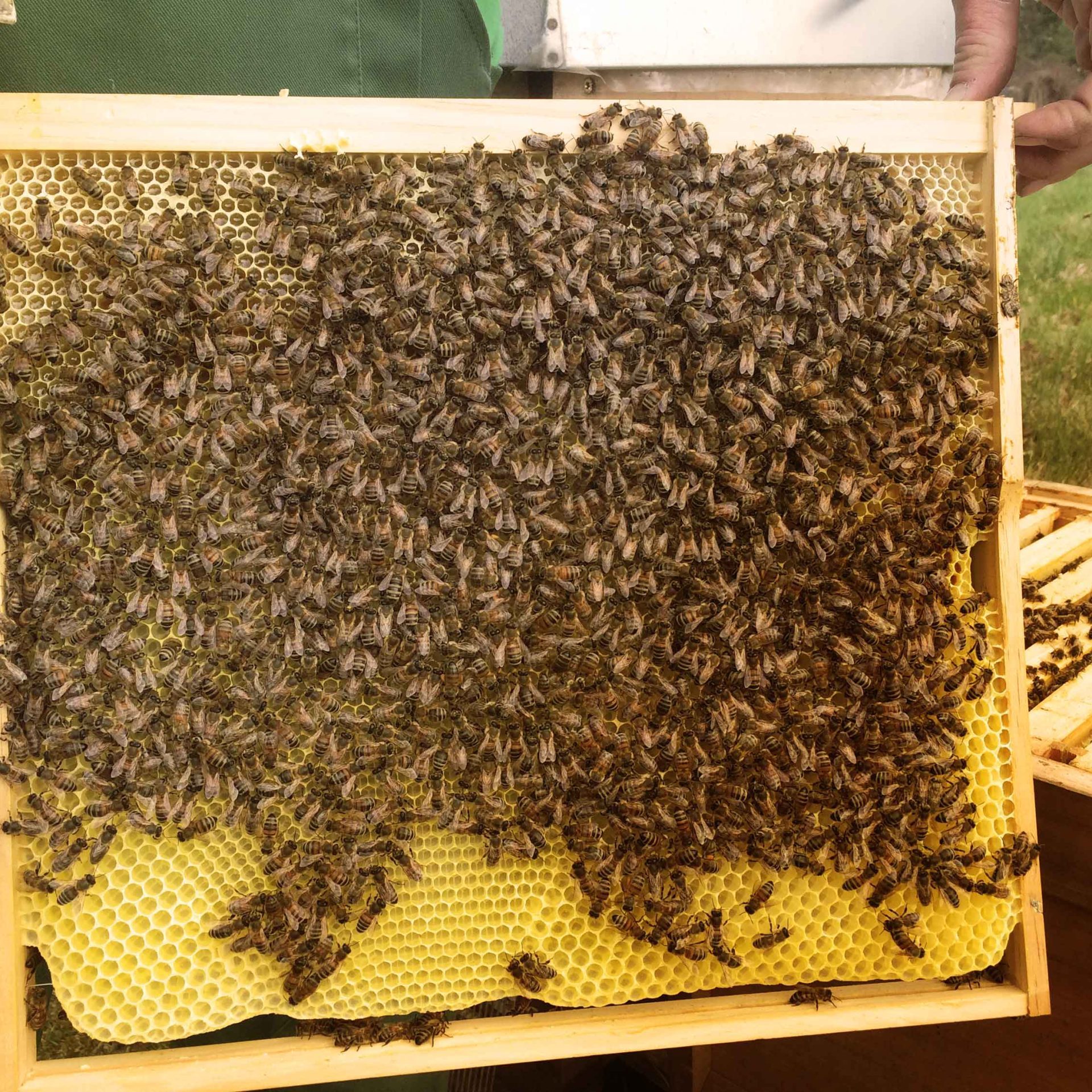 Den Wachs, den sie für den Bau ihrer Waben benötigen, produzieren sie selbst, indem sie ihn ausschwitzen. Auch den Aufbau des Brutnestes ändern wir nicht. Somit können sich die Bienen gemäß dem Jahresverlauf so entwickeln, wie es ihrer Volksstärke entspricht.